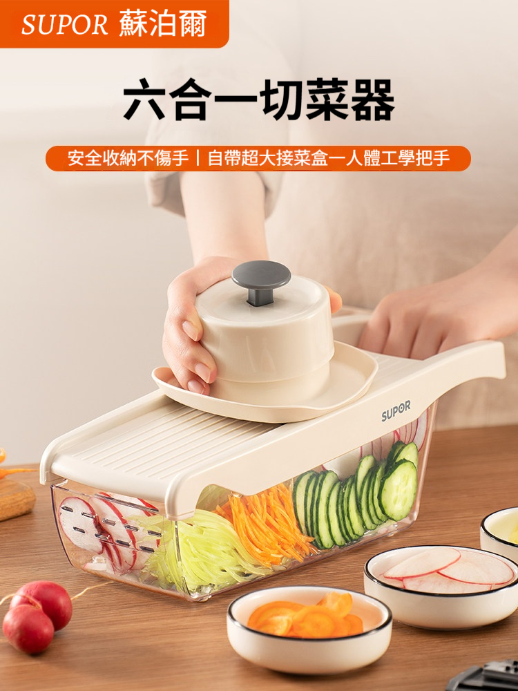 蘇泊爾切菜神器|六合一多功能刨絲器|廚房必備!輕鬆搞定土豆絲、蘿蔔絲|附護手器,切菜不傷手!