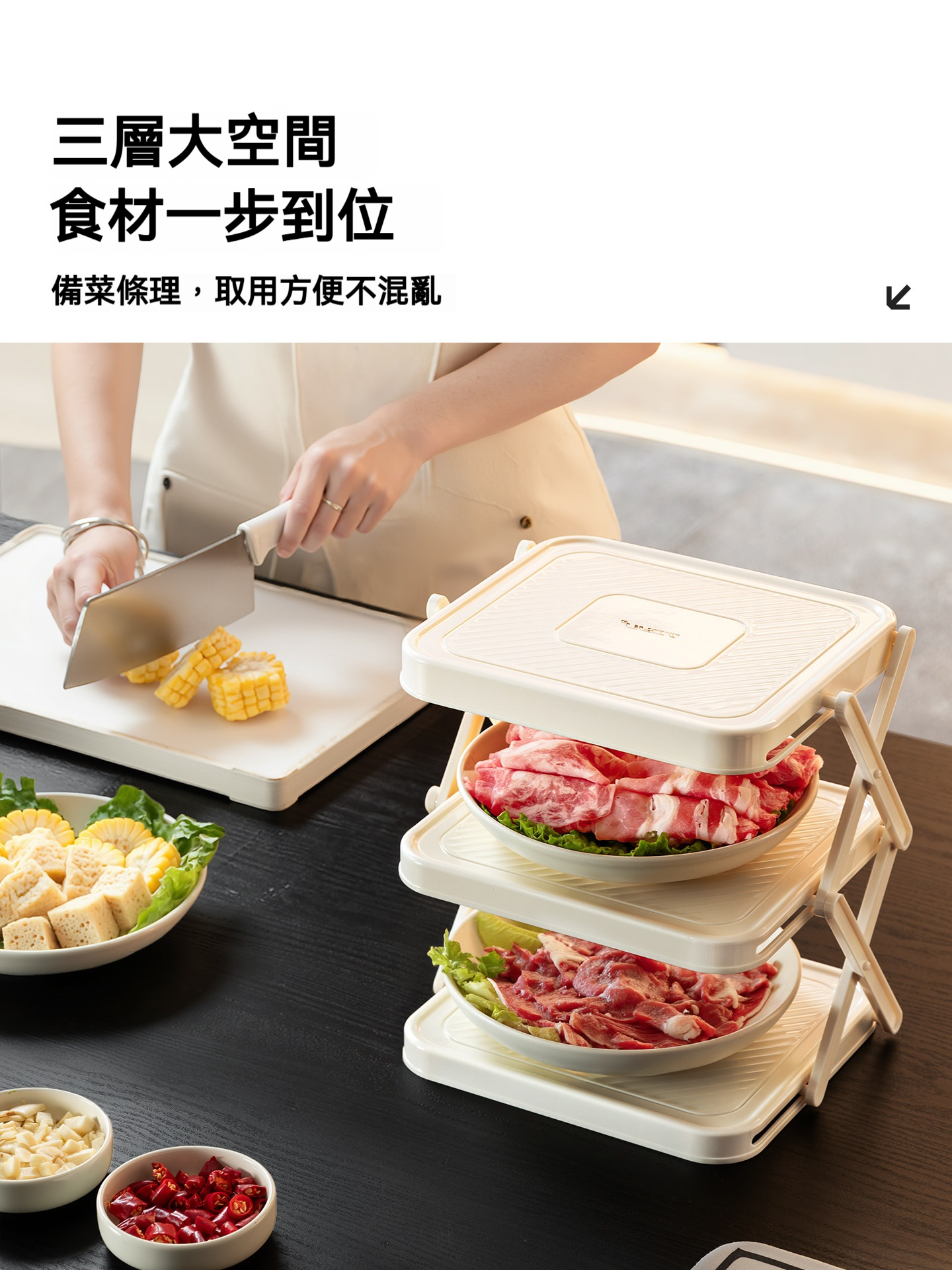 廚房收納術!可折疊多功能台面備菜架✨ 一物多用:多層火鍋食材架+瀝水盤 省空間收納神器,小廚房必備!