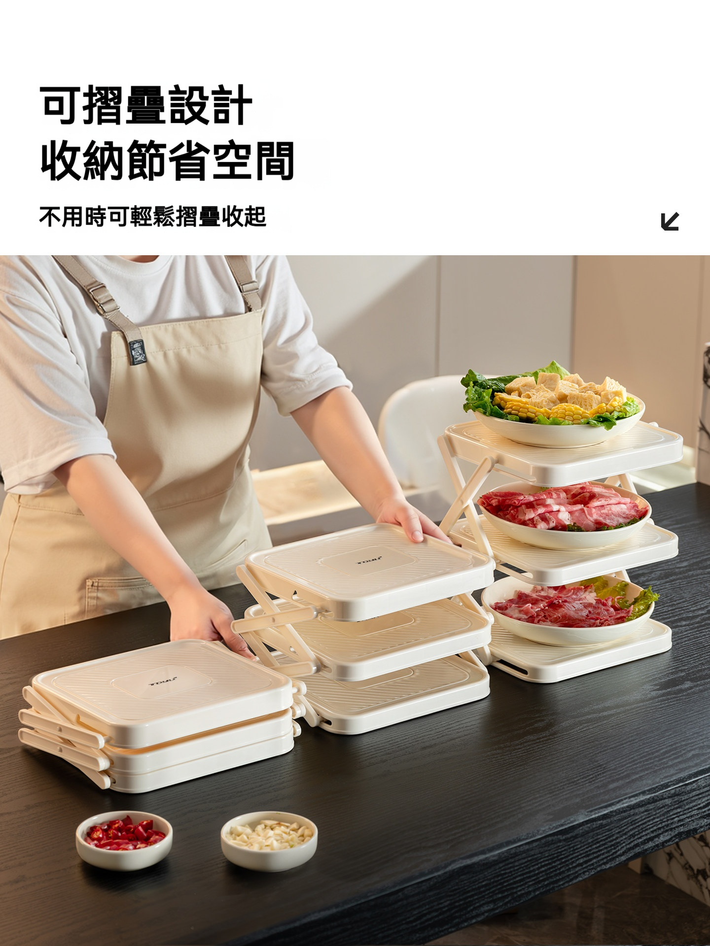 廚房收納術!可折疊多功能台面備菜架✨ 一物多用:多層火鍋食材架+瀝水盤 省空間收納神器,小廚房必備!